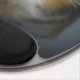 The plastic backing is nice and sturdy. The grippy pads underneath keep the mouse pad where I put it on my table. The pad the mouse sits on is cut well to fit the backing. The wrist pad is perfectly soft, supportive, and thick. I'm left-handed, and this mouse pad works just as well for me as it does for my right-handed friends. I'm the designer of HippieClecticHope products. I'm blown away by how well my intricate fractals turn out on the tangible items in the Zazzle Marketplace. This particular mouse pad ***appears*** like a 3D object... A mathematically-engineered rainbow black opal, inlaid under transparent fabric...