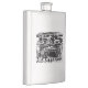 The product is a good size and came exactly as it was pictured. The lid is not attached to the flask, which could be dangerous on drunken nights... The print came out surprisingly well and looks very sharp. Would definitely recommend.