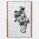 A quality printed throw has its advantages. This is a much finer weave throw than its loopier cousins, and though lighter, it is worth the investment for custom room accessorizing. The back is much prettier than the typical brown, and the fringe on the long sides very vivid, the selvage nicely done. Before photographing, I washed the throw in cold water, delicate, with a thicker woven throw the same size. On tumble dry low, this throw was dry in half the time as the other. This is a very practical quality if you use throws for furniture covers or to wrap up in frequently. The sleekness of the fabric makes it a great layer for accenting or protecting without the feeling of sitting on too much stuff. Perfect for napping or when you feel a light chill coming on. The color printing is beautiful and on this fabric, matched the design and color of my Photoshop image. This is an advantage for blending room fabrics and colors. The fringe on the short sides prints the colors from the design image and therefore varies from the side fringe. I streaked a white fractal line through the plaid pattern to give the illusion of weaving. This printed as crisp as an illusory thread, and put some white in the short side fringe, showing another advantage of print vs loomed- for artistic purposes, line lines, detail, and color integrity can be planned and preserved. My loomed throws have color limitations and more of a needlepoint texture. Print throws reproduce an exact image. The throw felt a little stiff straight out of the package, but this went away in the first delicate wash. Of course I searched the wash water for ink or bleeding and there was none.