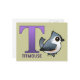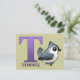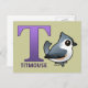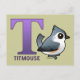 A cute Birdorable Tufted Titmouse perches by a purple letter T. You can totally customize this gift! Move the design around, change the background color or style, add your own text or images -- make it your own!