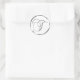 T Monogram Faux Silver Envelope Or Favor Seal. These classic round stickers are printed with non metallic ink on a flat sticker to look like silver. They are not beveled or embossed monograms but are designed to look like they are beveled or embossed monograms. These silver monogram seals are printed on a white background unless you select a different color background before you proceed to checkout. In addition to being pretty wedding stationery supplies, these elegant wedding invitation envelope seals also make great monogrammed custom Christmas card seals, personalized holiday greeting card envelope seal stickers and customized Xmas card monogram seal stickers.