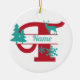 T Monogram Initial Christmas Holiday Tree Ornament