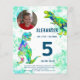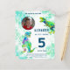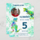 For the child who is turning 5 and loves dinosaurs. These colorful Roaring T Rex invite Dino fans to a fun 5th birthday party. Teal watercolor splash background with Tyrannosaurus rex in vibrant blue green and teal Personalize this multicolored psychedelic Tyrannosaurus rex design with a photo, the number of the birthday and the party details and you are all set for a fun packed dinosaur themed dino birthday. All dinosaur species are welcome. Original artwork Illustration by Catherine Sweetman