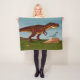 A Tyrannosaurus Rex and Velociraptor take a walk across a grassy field.
