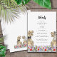 If you both love dinosaurs this fun dinosaur themed wedding reception details enclosure card is a great way to share your love of dinos with your wedding guests. Funny T-Rex bride and groom in a colorful prehistoric wildflower meadow to bring fun and joy to your wedding day. Modern whimsical typography calligraphy with easy to personalize templates so you can add the wedding reception location and helpful guest instructions for attending. Unique Tyrannosaurus Rex bride and groom in brown earthy tones with watercolor florals in blue purple pink yellow orange and green hues. Original artwork by artist Catherine Sweetman Ideal for the wedding day reception or rehearsal dinner. Matching wedding suite includes everything you will need on your fun wedding journey