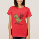 T-rex was happy until the song said he should clap his hands! Funny dinosaur drawing with text lettering, on t-shirts, hoodies, cards, gifts.