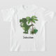 Cute cartoon T-Rex dinosaur and palm tree design by Destei is perfect for kids who love dinosaurs. A custom name area lets you personalize the shirt for birthdays, holidays or everyday fun. The playful illustration features a smiling green dinosaur and tropical background, making it a great personalized gift for dino-loving children.