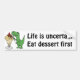 Funny green T-rex dinosaur is eating an ice cream sundae in this fun original art design. He imparts great wisdom by saying that life is uncertain. Eat dessert first.