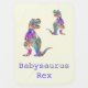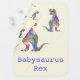 'Babysaurus Rex' with a colorful T. Rex roar, a funny gift idea for new parents, new baby or just for the fun of it at a baby shower to celebrate having a new dino in the family. You can Personalize this adorable baby dinosaur design by adding a baby name in front of tyrannosaurus rex to create your own unique dinosaur name, for example to 'Johnosaurus Rex' ideal for John or Jonathan, Hannah would become 'Hannahsaurus Rex'. Babysaurus Funny Colorful Dinosaur illustrations and customizable slogan. Original artwork by artist Catherine Sweetman