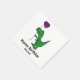 Wonderful artistic funny green t-rex dinosaur holding purple balloon original art custom paper napkins. Perfect for birthdays for kids who love dinosaurs and for those special over the hill birthdays.
