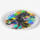 T-Rex Dinosaur Jurassic Reptile on Paint Stains Paper Plates