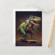 T-Rex Dinosaur Rising a Skateboard Birthday Party Postcard
