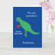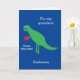 The cute dinosaur Valentine's day card for grandson or whomever you would like to personalize it for. You can easily customize the front with their name. Inside reads to Valentine's day message, which can be customized. The front of this dinosaur Valentine's card features a green t-rex holding a red heart and says "you're dino-mite!". Great for any dinosaur fan for Valentine's day!