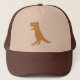An orange tyrannosaurus stalks across this hat.