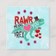 Business cards with an image of a green t-rex wearing a black top hat with hearts and flowers all around. Text says Rawr means I love you in t-rex.