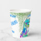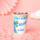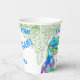 Colorful Dinosaur birthday party custom paper cups for any age. Fun T-Rex dino with watercolor Jurassic jungle foliage, with a personalized Happy Birthday Roar. The words ‘ A Happy Birthday Roar for’ with a custom child’s name. Modern fun blue typography that’s easy to personalize using the template. Original artwork by artist Catherine Sweetman