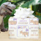 Add your child's name and age to this cute happy birthday dinosaur wrapping paper for a one of a kind gift presentation. This fun custom dinosaur birthday gift wrap features colorful lettering spelling out HAPPY BIRTHDAY and STOMP CHOMP AND ROAR along with text templates where you add the birthday boy or girl's name in two places and their age in two places. The birthday T-Rex in a party hat with balloons in shades of brown, tan, peach, purple and blue is gender neutral and can be dressed up with ribbon and bows in colors pulled from the pattern. This personalized wrapping paper for kids is so cute you might want to save a swatch of the leftover bits to put in the memory book as a keepsake from what is sure to be a memorable dinosaur themed birthday party.