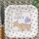 These PARTY ASAURUS cute dinosaur birthday party paper plates will add a little extra fun to your dino décor. A background pattern of brown dinosaur tracks sets the theme for a middle square with a tan and peach T-Rex in a party hat and colorful letters spelling out PARTY ASAURUS, making these large square paper plates great for any age. Designed to be gender neutral, the color palette of browns, tans, peach, blues and purples makes these cute dinosaur paper plates appropriate for both boys and girls.