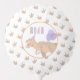 Custom dinosaur balloons add so much fun to your birthday party décor. These personalized dino party balloons have room for you to add your child's name and dinosaur age on the front, with a matching T-Rex and ROAR in colorful lettering on the back. The background of these personalized dinosaur balloons for kids is a pattern of brown dinosaur tracks and the main design is a white circle rimmed in peachy tan. Add your child's name in purple and dino age (ONASAURUS, TWO REX, THREE REX, DINO FOUR, FIVE ASAURUS etc) in fanciful brown letters. These cute birthday balloons were designed to be gender neutral in shades of brown, tan, peach, blue and purple so they make a great addition to your dinosaur themed birthday party for boys or for girls.