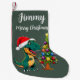 T-rex wearing santa hat billiard green small christmas stocking