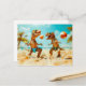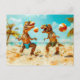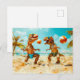 T-Rexes Playing Ball on Beach Holiday Postcard