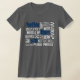 My overall review is that the T-shirt is nice, it fits true to size however the font is significantly smaller than advertised and you can't read it. The printing is unreadable and there is a strain to read it. It does not look like the advertised product. Maybe the shirt color is darker or a larger more visible font should have been used. Photos with and without flash and font is barely legible.