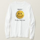 I love this shirt. I had written to the artist asking her if this picture was available on a shirt, and she wrote me back telling me where I could find the shirt. These shirts can be custom made to have a different saying. I loved this saying and went with it. The artist wrote me back later to tell me that she had seen my order go through. How's that for service? Pretty special. It's just as displayed. Perfect!
