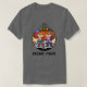 My 11 yo wore adult XL (5’7” 165#). The 8yo is small framed. She wore adult small and tied it in the back. Grandma wore adult large with long sleeve shirt underneath. Tall girl adult medium. Dark haired male adult large. Good quality dark Heather gray, Gildan brand shirt. -it was next up from basic choice and cost about $20 per shirt. Not too thick or thin. Washed and dried well, no major shrinkage. Not see-through. Can wear a bra under it fine. Screen print is just as shown and well done, front and back.