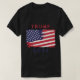This men's T-shirt features a large, vibrant American flag emblazoned across the front, its stars and stripes vivid and bold, symbolizing the spirit of freedom and national pride. Centered over the flag is a prominent "TRUMP 2024" in striking red and blue lettering, set against the flag’s backdrop to make a powerful statement.