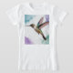 Embrace the beauty of nature with this stunning T-shirt featuring a vibrant hummingbird in mid-flight. Set against a soft, watercolor backdrop of green and purple hues, this design captures the grace and elegance of one of nature’s most delicate creatures. Perfect for wildlife enthusiasts and art lovers alike