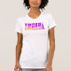 My overall review is that the T-shirt is nice, it fits true to size however the font is significantly smaller than advertised and you can't read it. The printing is unreadable and there is a strain to read it. It does not look like the advertised product. Maybe the shirt color is darker or a larger more visible font should have been used. Photos with and without flash and font is barely legible.