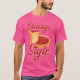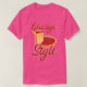 My 11 yo wore adult XL (5’7” 165#). The 8yo is small framed. She wore adult small and tied it in the back. Grandma wore adult large with long sleeve shirt underneath. Tall girl adult medium. Dark haired male adult large. Good quality dark Heather gray, Gildan brand shirt. -it was next up from basic choice and cost about $20 per shirt. Not too thick or thin. Washed and dried well, no major shrinkage. Not see-through. Can wear a bra under it fine. Screen print is just as shown and well done, front and back.