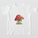 A cute fantasy illustration of a tiny green frog sitting peacefully beneath a red mushroom cap with white spots. The frog’s big glossy eyes and soft blush cheeks give a sweet, heart‑warming expression, while gentle raindrops slide down the mushroom like a natural umbrella. Warm colors, smooth shading, and a cozy woodland mood make the scene feel magical, calm, and storybook‑like.