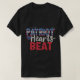 Text: "Patriot Hearts Beat" is displayed prominently on the front of the shirt.