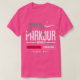 My 11 yo wore adult XL (5’7” 165#). The 8yo is small framed. She wore adult small and tied it in the back. Grandma wore adult large with long sleeve shirt underneath. Tall girl adult medium. Dark haired male adult large. Good quality dark Heather gray, Gildan brand shirt. -it was next up from basic choice and cost about $20 per shirt. Not too thick or thin. Washed and dried well, no major shrinkage. Not see-through. Can wear a bra under it fine. Screen print is just as shown and well done, front and back.
