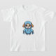 A charming illustration of a cute puppy dressed in an oversized blue hoodie, with sparkling eyes and a happy tongue-out smile. The soft color palette, rounded shapes, and cozy clothing create a playful yet heartwarming look. The long sleeves and relaxed pose add extra charm, giving the character a fun, stylish, and irresistibly adorable personality.