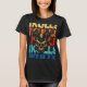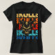 The design features a frightening demonic skull or monstrous face with horns and aggressive features. The central image is layered over stacked lines of the word "SKULLS," each colored in a distressed retro sunset palette of orange, red, and blue. This grunge aesthetic and intense imagery make it the perfect piece for fans of heavy metal, rock music, gothic culture, and vintage graphic tees. It’s a bold, eye-catching design that stands out from the crowd.