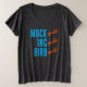 Available in white, smoke (dark gray), and black. Want a different shirt style or fit? Zazzle makes it easy—just select your preferred shirt type and color with a quick edit before you add it to your cart. They’ll print it, ship it, and you’ll be mocking bird-ing in no time.