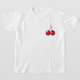 Two glossy red cherries sit side by side, transformed into a playful visual twist with green stems fused into a single lit fuse. A bright spark bursts at the top, radiating warm orange and yellow light that contrasts sharply with the deep black background. Smooth highlights, bold outlines, and rich colors give the illustration a polished cartoon look, blending sweetness with a touch of explosive humor.