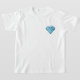 A bright blue diamond is illustrated in a cute, expressive cartoon style, floating against a deep black background. Faceted geometric lines reflect light in crisp angles, while tiny star-like sparkles shimmer across the surface. Big glossy eyes and soft pink blush give the gem a friendly, kawaii personality, blending luxury shine with playful charm. Clean outlines and radiant highlights make the image feel magical, polished, and delightfully modern.
