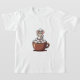 This delightful illustration showcases a cheerful grey mouse character donning a classic white chef's hat, perched playfully atop a mountain of fluffy marshmallows. The sweet rodent waves a friendly paw while balancing on the sweet treats floating in a large, glossy brown mug filled with rich hot chocolate. The scene radiates warmth and coziness, combining culinary charm with kawaii animal aesthetics.