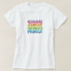 A multicolor t-shirt design with the text "Chubby single &Ready for A pringle" in a fun and eye-catching style.