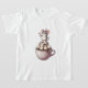 Celebrate the sweetness of the holiday season with this adorable illustration of a tiny gray mouse perched triumphantly atop a mug of hot chocolate. The cheerful rodent is dressed for a party in a red-and-white striped hat and holds a matching candy cane while balancing on a mountain of fluffy whipped cream. The decadent beverage is garnished with toasted marshmallows and a generous drizzle of rich chocolate syrup that runs temptingly down the side of the cup. This whimsical cartoon design captures a cozy and joyful winter vibe, perfect for lovers of cute animals and sugary treats.