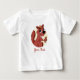 Customizable Baby T-Shirt with an illustration of a cute red squirrel holding a peanuts, with a beige circle in the background, a cute animal design for kids by Radka Kavalcova