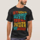 The design uses large, chunky, block typography reminiscent of vintage sports apparel or retro signage. The quote is rendered in a vibrant, alternating color palette of teal, orange/red, and yellow/gold, which adds visual energy and impact. This piece is perfect for entrepreneurs, side hustlers, athletes, students, or anyone dedicated to working hard and achieving their goals silently and effectively.