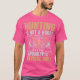 My 11 yo wore adult XL (5’7” 165#). The 8yo is small framed. She wore adult small and tied it in the back. Grandma wore adult large with long sleeve shirt underneath. Tall girl adult medium. Dark haired male adult large. Good quality dark Heather gray, Gildan brand shirt. -it was next up from basic choice and cost about $20 per shirt. Not too thick or thin. Washed and dried well, no major shrinkage. Not see-through. Can wear a bra under it fine. Screen print is just as shown and well done, front and back.
