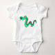 This white baby garment showcases a playful, bright green cartoon snake coiled in a wavy pose, decorated with colorful polka dots along its body. With a cheerful expression and flicking tongue, it’s a fun, eye-catching design perfect for little ones who love quirky, vibrant animals.