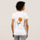 Single Calendula bud with "Flower power" at pocket area on front. Stemmed Calendula on back.