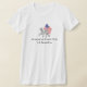 My overall review is that the T-shirt is nice, it fits true to size however the font is significantly smaller than advertised and you can't read it. The printing is unreadable and there is a strain to read it. It does not look like the advertised product. Maybe the shirt color is darker or a larger more visible font should have been used. Photos with and without flash and font is barely legible.