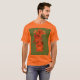 Add a splash of fun to your wardrobe with this vibrant orange T-shirt featuring a playful cartoon design! The artwork shows an adorable stack of cheerful animals—a happy dog at the bottom, a joyful cat in the middle, and a cute cat on top holding up two bones in celebration. Set against a deep green background panel, the warm red-orange tones of the animals perfectly complement the shirt color. Perfect for animal lovers, or anyone who enjoys quirky, lighthearted fashion.
